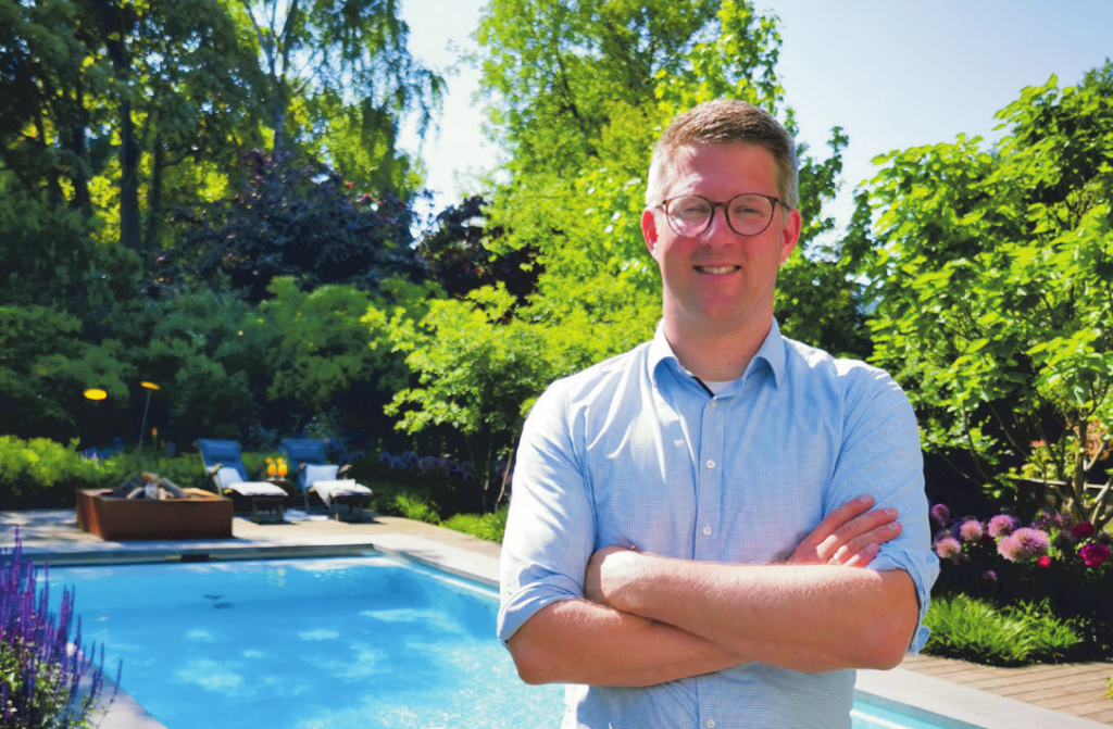 Planung, Gartenbau, Poolbau – alles aus einer Hand, das bieten Maximilian Holzhausen und sein Team bei Achtermann in Bennigsen ihren Kundinnen und Kunden:„Wir bauen nicht nur jeden Garten nach Wunsch, sondern wir beraten und planen auch“, sagt Geschäftsführer Maximilian Holzhausen. Ein Schwerpunkt des Angebots ist das Thema Wasser – wer sich einen Pool oder Schwimmteich im eigenen Garten wünscht, ist hier richtig. Und kann im Schaugarten mit Poolhaus auf dem Achtermann-Gelände vorab genau entdecken, welche kreativen und modernen Lösungen es gibt. Jungunternehmer Holzhausen (40) kam im Jahr 2009 über ein Praktikum während seines Studiums in den Betrieb; arbeitete danach als Junior-Bauleiter und übernahm immer mehr Verantwortung. Seit 2017 ist er alleiniger Geschäftsführer und für mehr als 50 Mitarbeitende in mehreren Firmen verantwortlich. „Bei uns passiert viel“, sagt Holzhausen: ein neuer Pool-Onlineshop und weitere Projekte sind in Planung: „Wir wollen uns breiter aufstellen im Markt.“